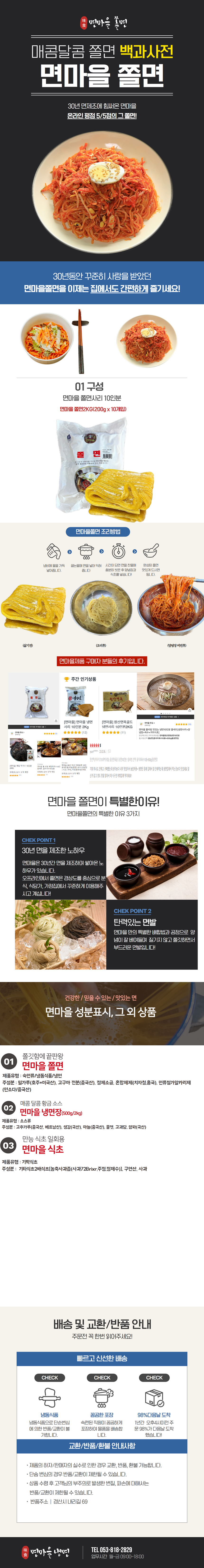 쫄면 이름 대로 쫄깃함을 자랑하는 면마을 쫄면 입니다. 고무줄 같이 무작정 질긴 면이아닌 고객께서 편하게 드실 수 있도록 제조하고 있습니다.