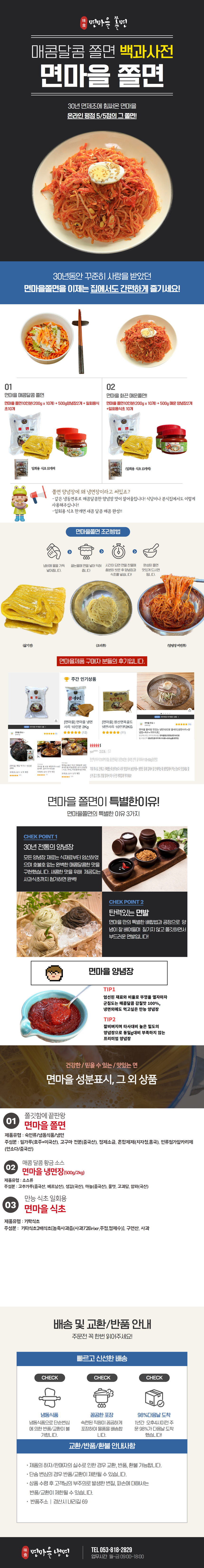 쫄면 이름 대로 쫄깃함을 자랑하는 면마을 쫄면 입니다. 고무줄 같이 무작정 질긴 면이아닌 고객께서 편하게 드실 수 있도록 제조하고 있습니다.